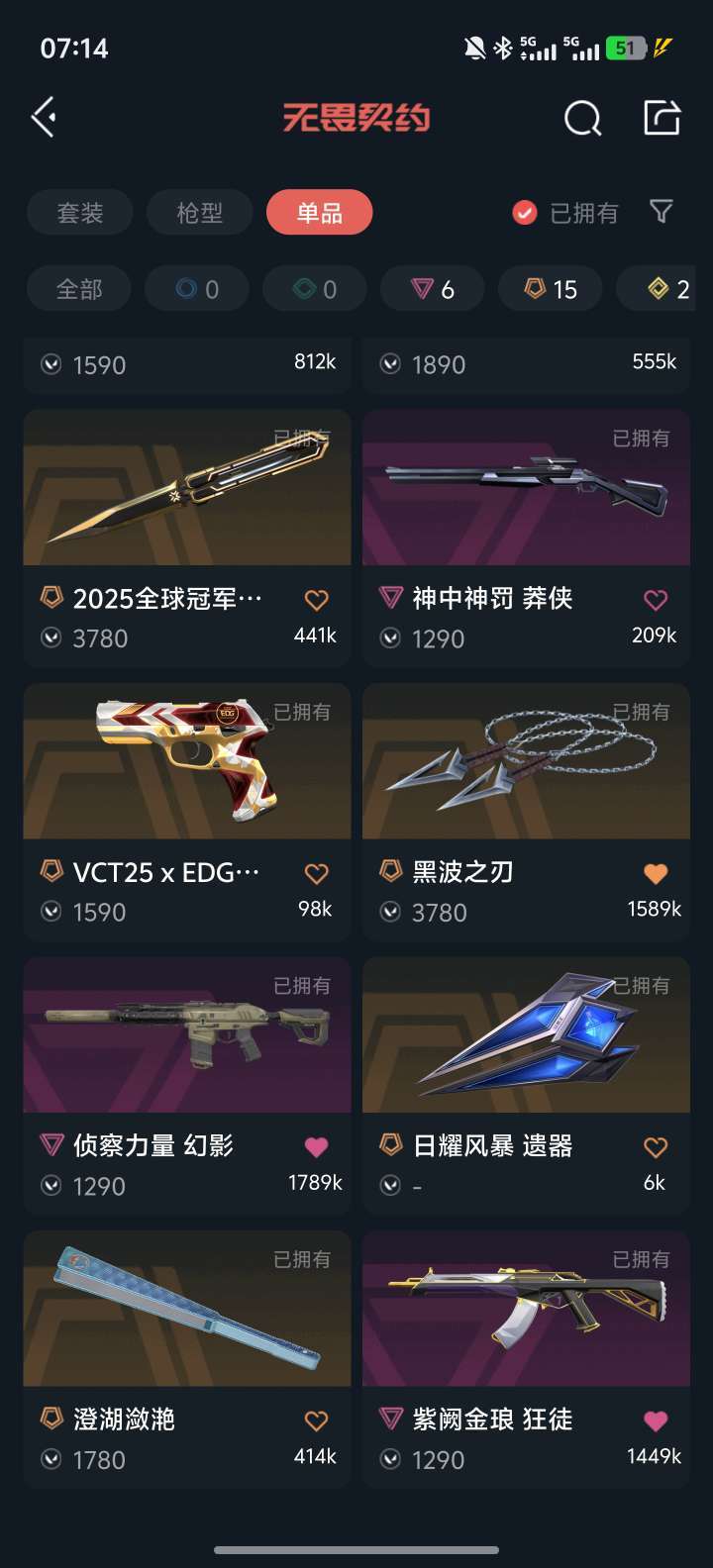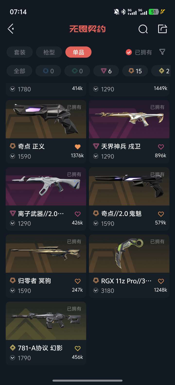 装备描述:25冠军套 颗秒ak 威龙之刃 太极扇 显卡爪刀 黑波 古神幻影 紫金 奇点正义 离子ak 侦查幻影 781幻影 天界戍卫 天界鬼魅