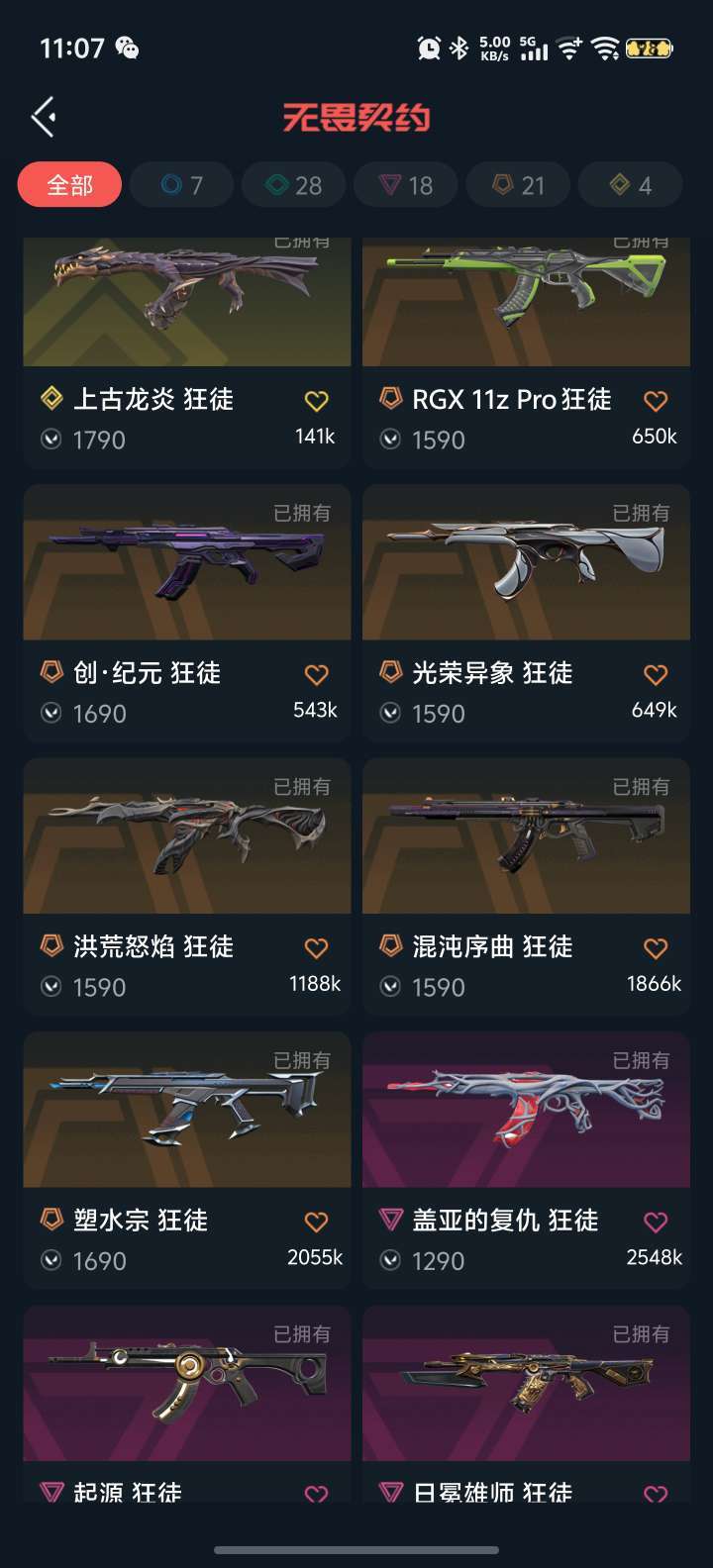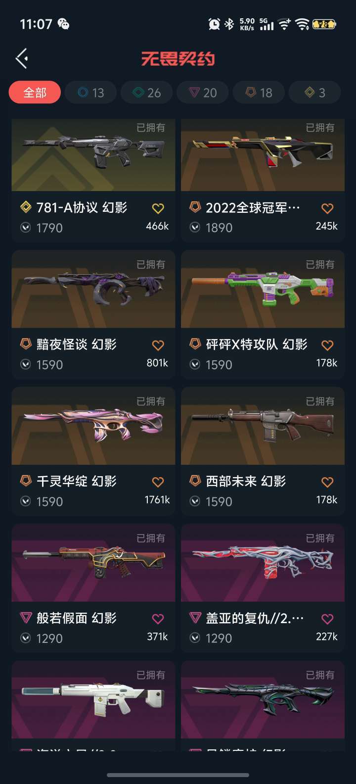 所有枪均有非赛季通行证枪皮,狂徒三幻神,22冠军幻影,刀皮也有很多。