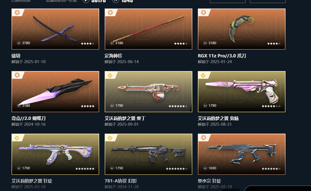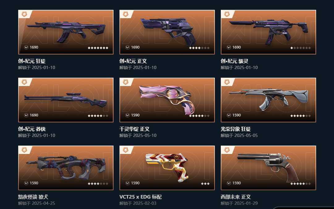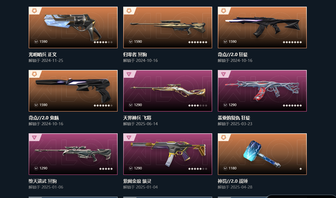 装备描述:(千灵华绽 正义 (艾沃莉的梦之翼 鬼魅 (光明哨兵 正义 )(奇点//2.0 鬼魅 (创·纪元 正义;(西部未来 正义 ) 冲锋枪:(创·纪元 骇灵 步枪:(781-A协议 幻影 (黯夜怪谈 獠犬;(光荣异象 狂徒 炫彩1);(光荣异象 狂徒 炫(创·纪元 莽侠 炫彩2);(创·纪元 莽侠 炫彩3) 机关枪:(艾沃莉的梦之翼 奥丁 炫彩2) 近战武器:(定海神珍 炫彩3);(RGX 11z Pro//3.0 爪刀 炫彩3);(镭切 炫彩1)