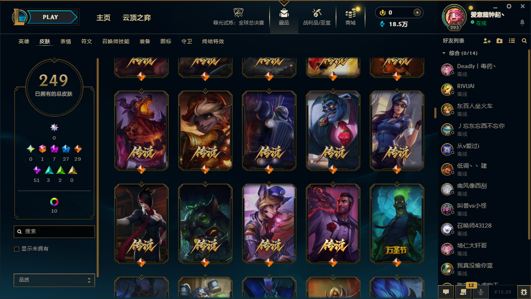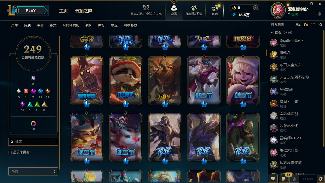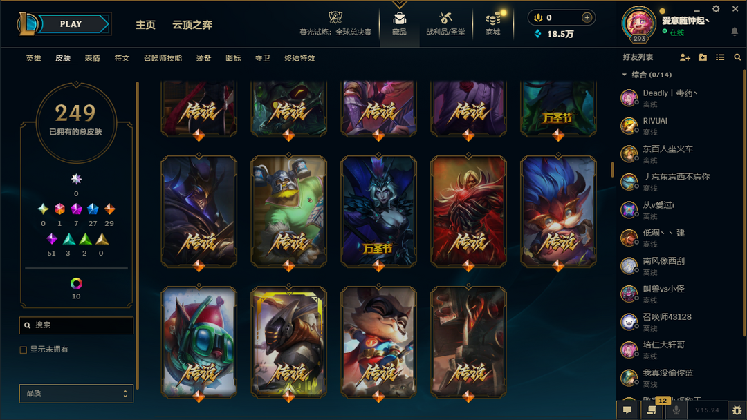 暗影岛全英雄200+皮肤,光辉元素大天使,海克斯人马,皎月嫦娥,龙年大嘴云顶T1发条,夜月幻龙亚索。