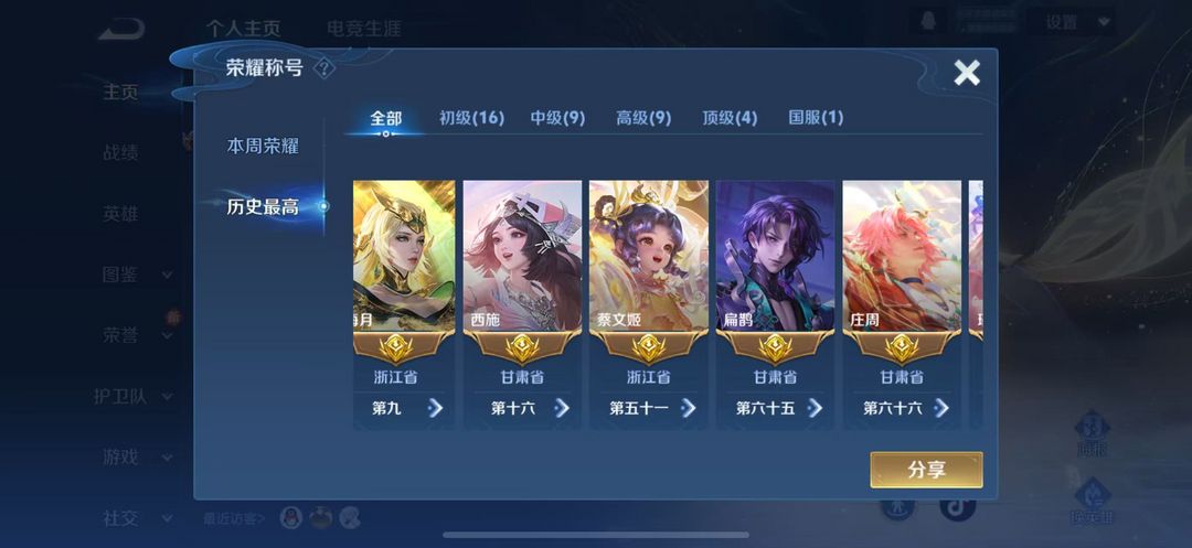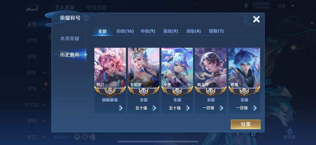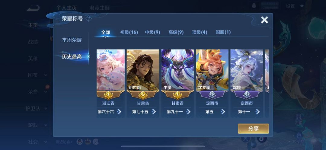 75段中路历史双大国⑤小国⑧金标 瑶安吉拉已补✨氪金女神 法辅皮多质量传✨萌妹专属