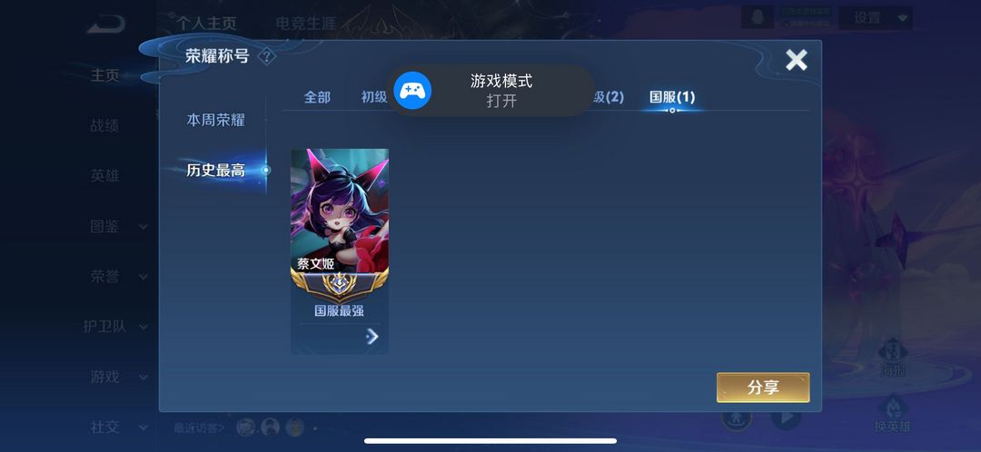 游戏区服:王者荣耀-QQ苹果-QQ账号