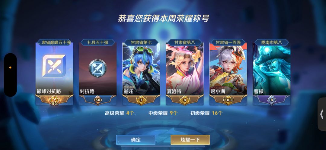 本周省7蚩姹 省5夏洛特 省标姬小满在榜 巅峰2708名 禁巅峰 祝老板玩的开心