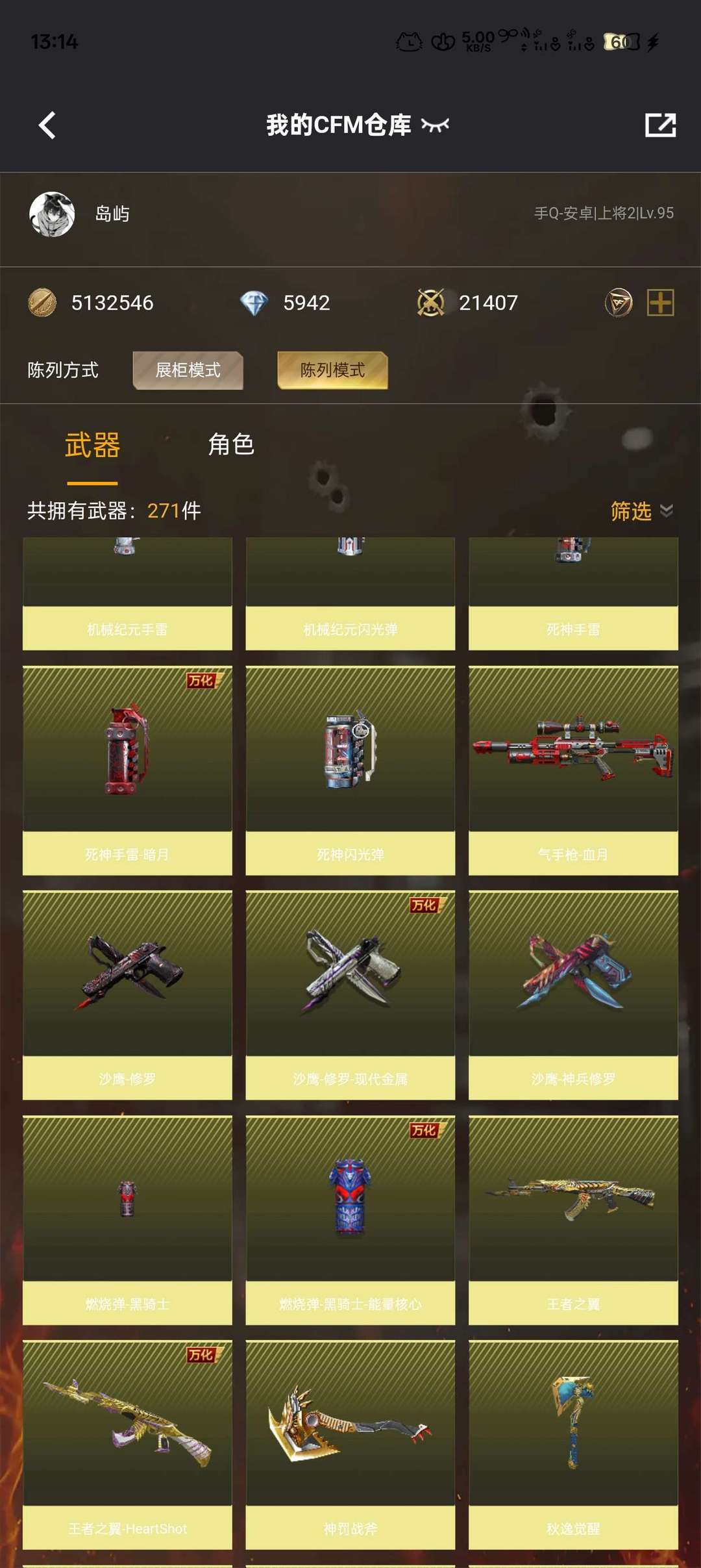 有一把王者武器还有几个稀有角色还有一些英雄武器