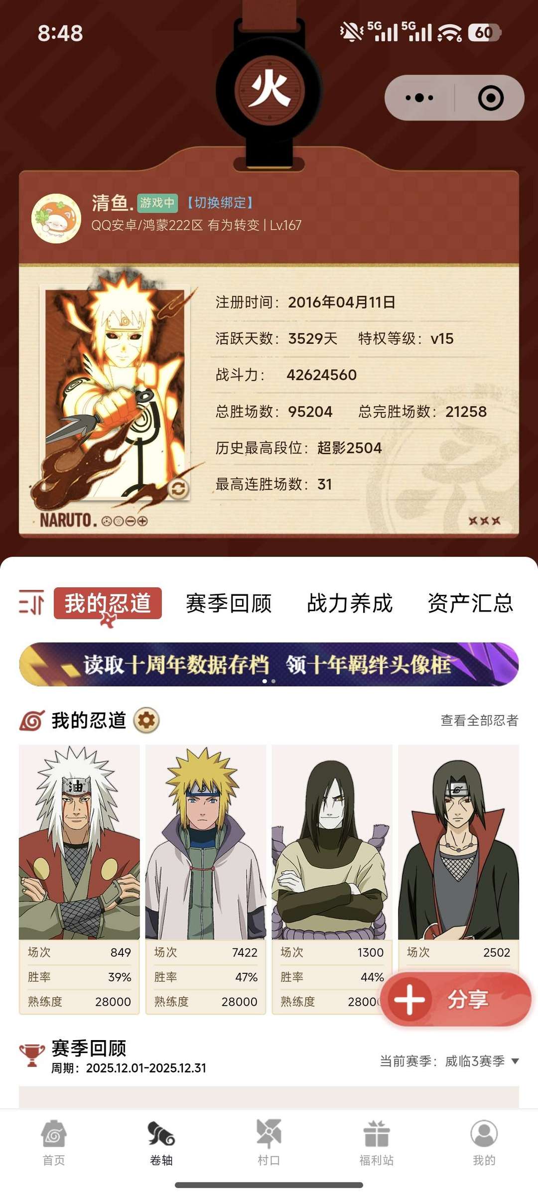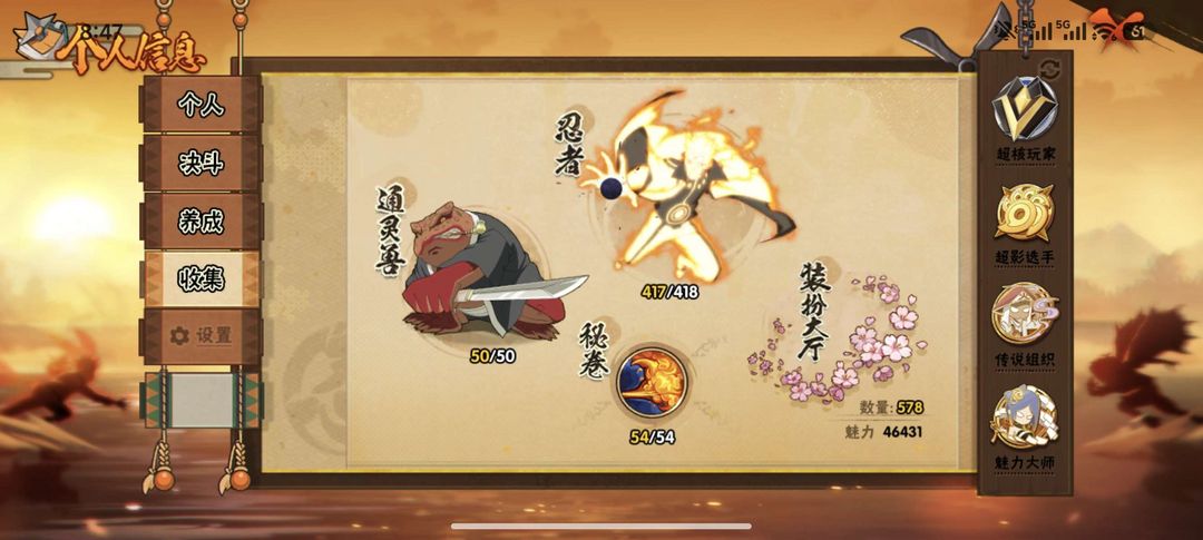 全忍者❤️妖怪奇谭纲手✨仙人巳月✨4265w超核号✨全通灵全皮肤✨28个富贵奥义77级魅力值