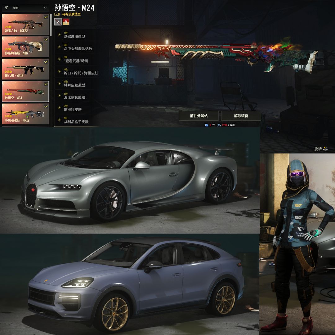 保时捷卡宴+豪华布加迪跑车⑧级孙悟空M24⑥猪八戒M416②小兔MK12①弥诺AUG①妖魔ACE