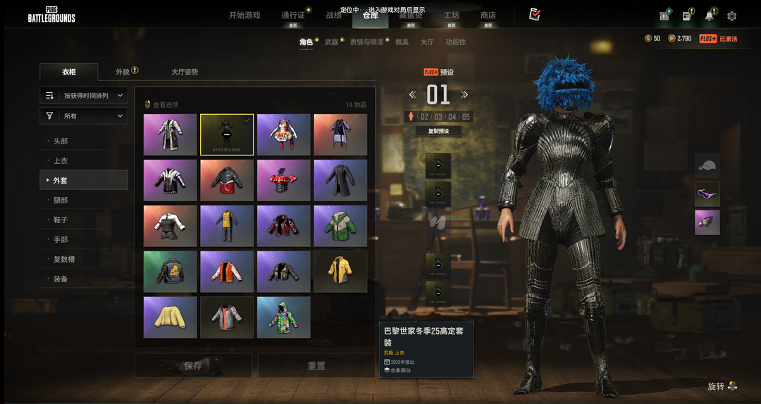 装备描述:可排兰博基尼SUV夜曲M24巴黎世家套装1金面具PGC斑斓危机套战神衣柏林裤手套吴彦祖面容枫叶